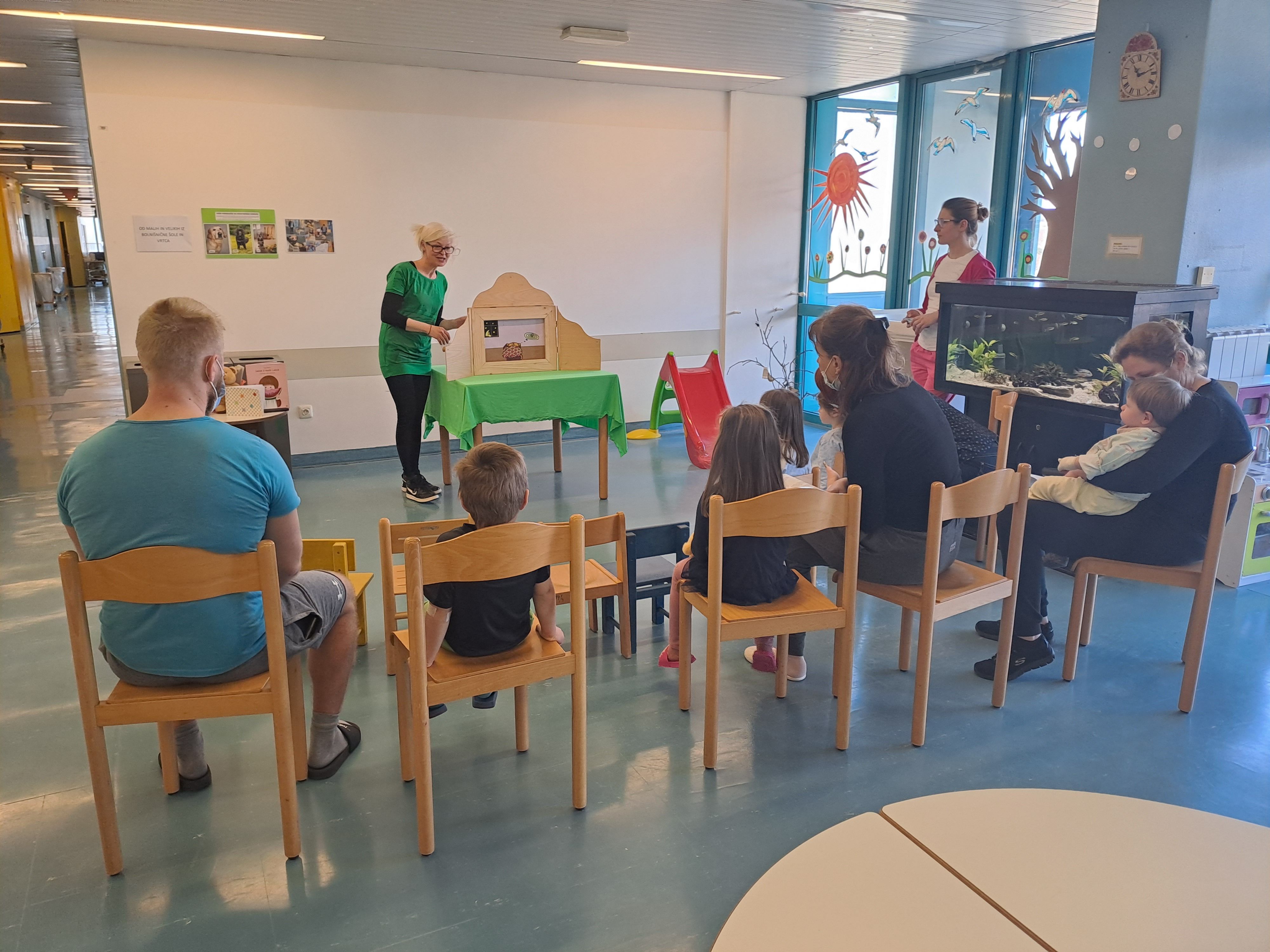 Vzgojitelji vrtca Splošne bolnišnice "dr. Franca Derganca" Nova Gorica so na pediatričnem oddelku na svetovni dan poezije pripravili otroško predstavo in obeležili tudi prihod pomladi.