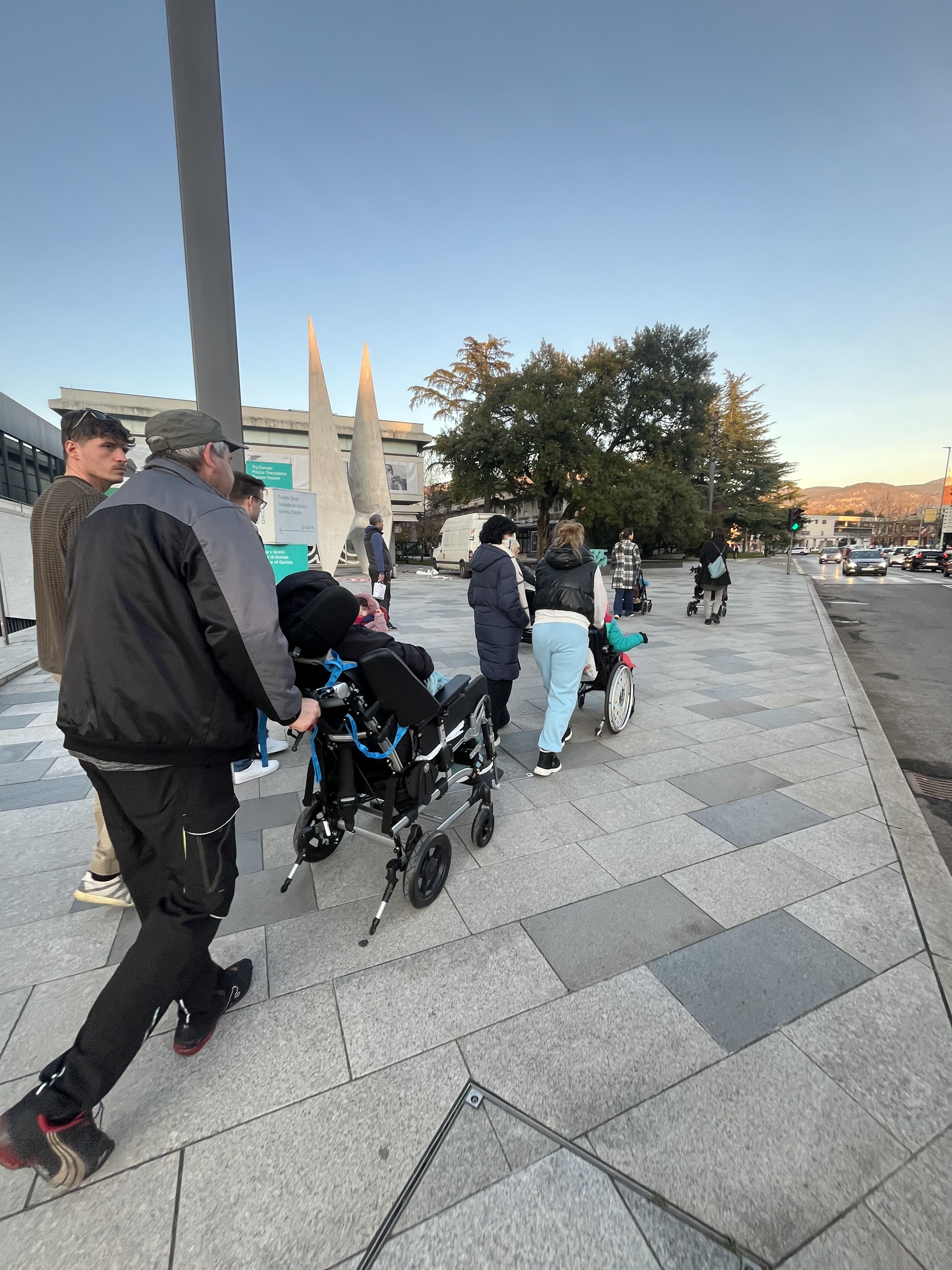 »Letošnji december je bil za otroke iz Oddelka za invalidno mladino in rehabilitacijo še posebej pester. Po daljšem času so naši otroci znova odšli na sprehod z vozički v »svet«. Ta svet je bil le center Nove Gorice, a je tak izlet za vse nas velik logističen podvig. Zato smo zelo veseli, da nam ga je uspelo organizirati. Toplo oblečeni, z dodatnimi dekami in vsemi potrebnimi, tudi zdravstvenimi, pripomočki za otroke, smo preživeli v centru mesta in uživali v vrvežu glasov, vonjav in sijaja praznične okrasitve.
