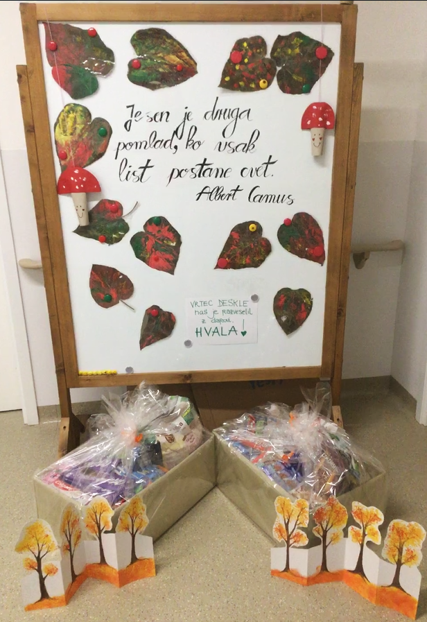 S skupino Čebele iz vrtca Deskle so se odpravili na sprehod po poti od Rožne Doline do dvorišča Oddelka v Stari Gori. Tam so se skupaj igrali, se smejali in si izmenjali darove, ki so jih otroci sprejeli z iskrenim navdušenjem. Lepo je bilo začutiti povezanost in prijateljstvo.
