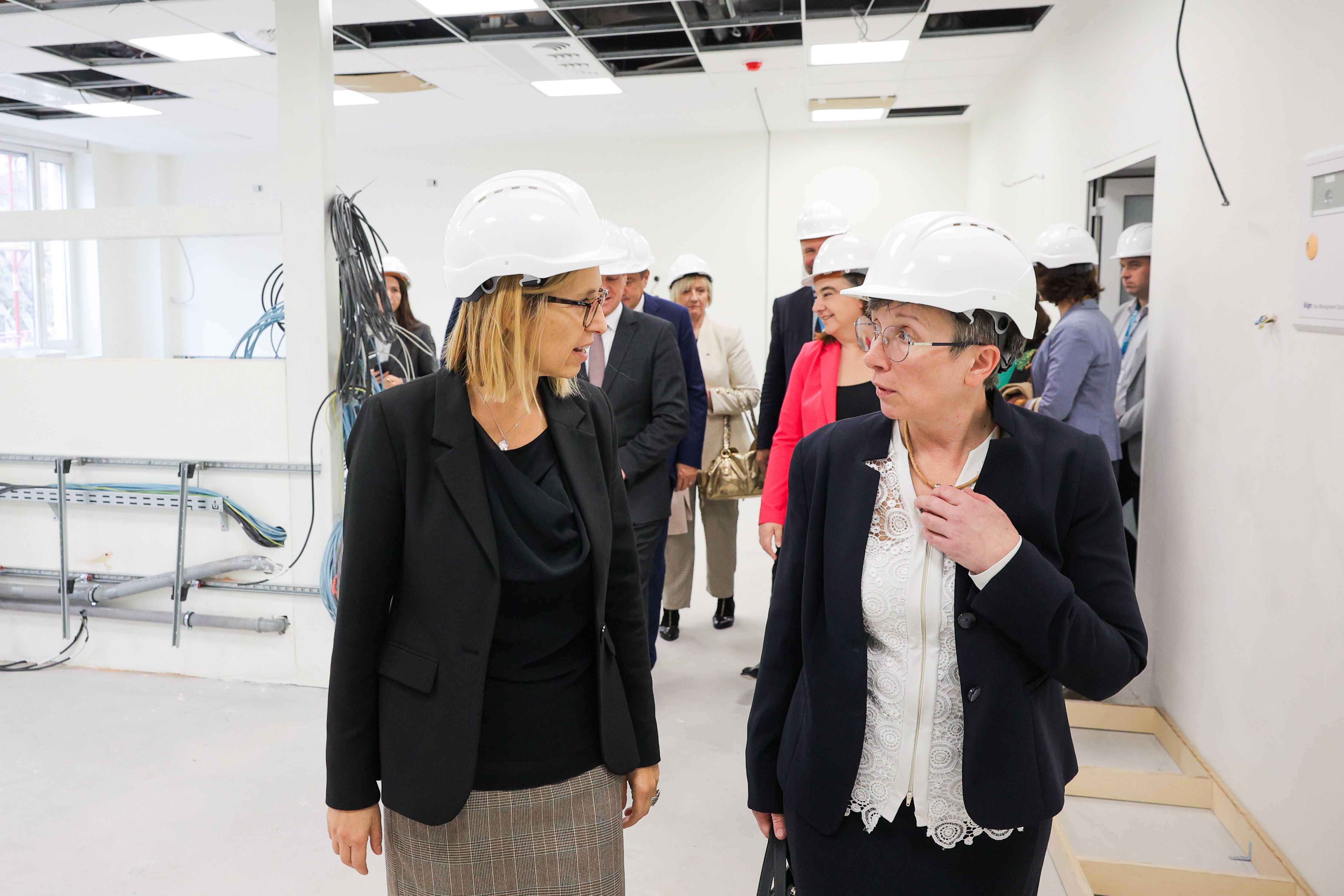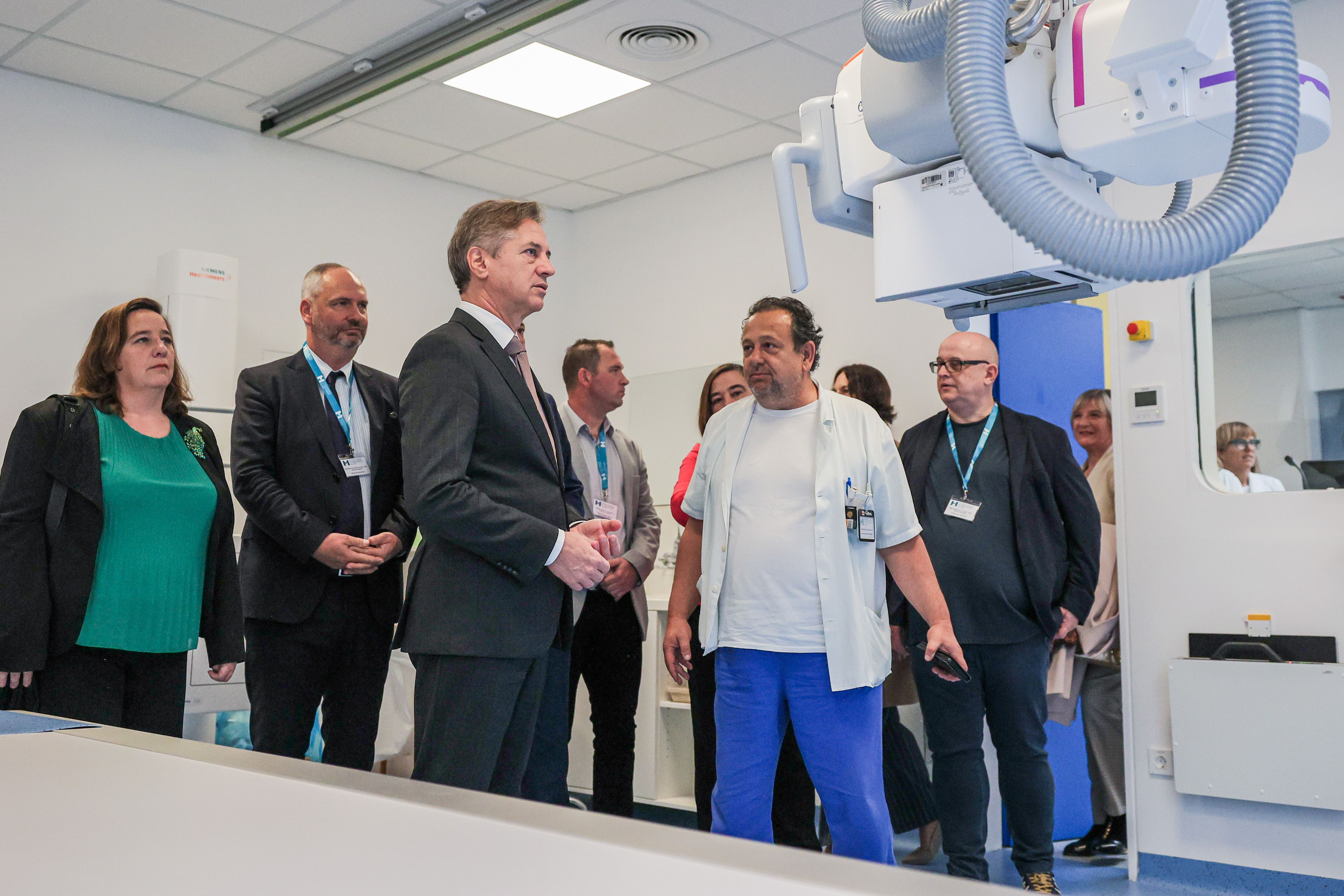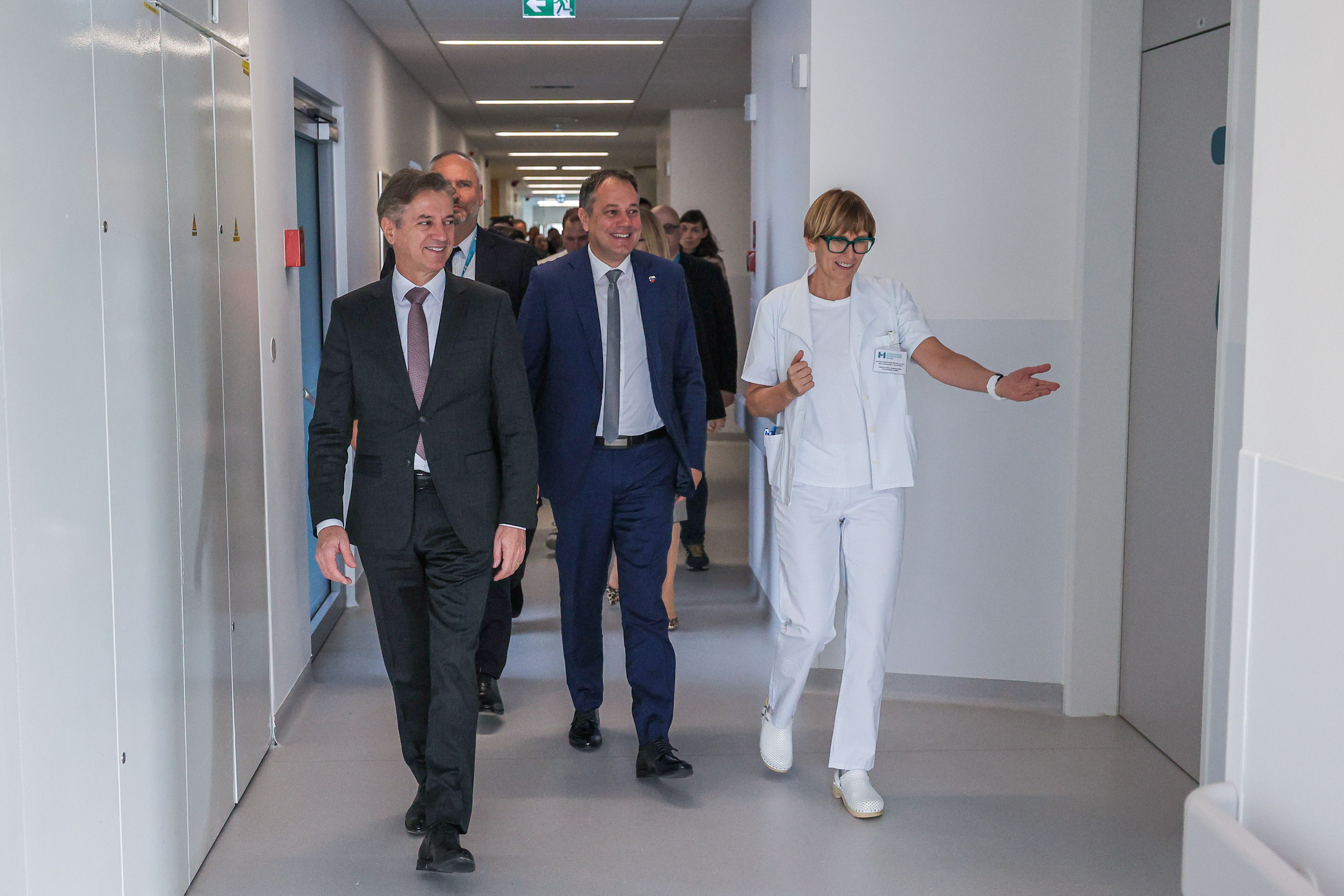 Z vladno delegacijo smo si najprej ogledali obnovljeno 5.B nadstropje, sledila je predstavitev kardiološkega oddelka kot primer stare infrastrukture. V porodnišnici smo se sprehodili skozi porodni blok in sodobne sobe, ki smo jih prenovili s pomočjo projekta EZTS-GO.