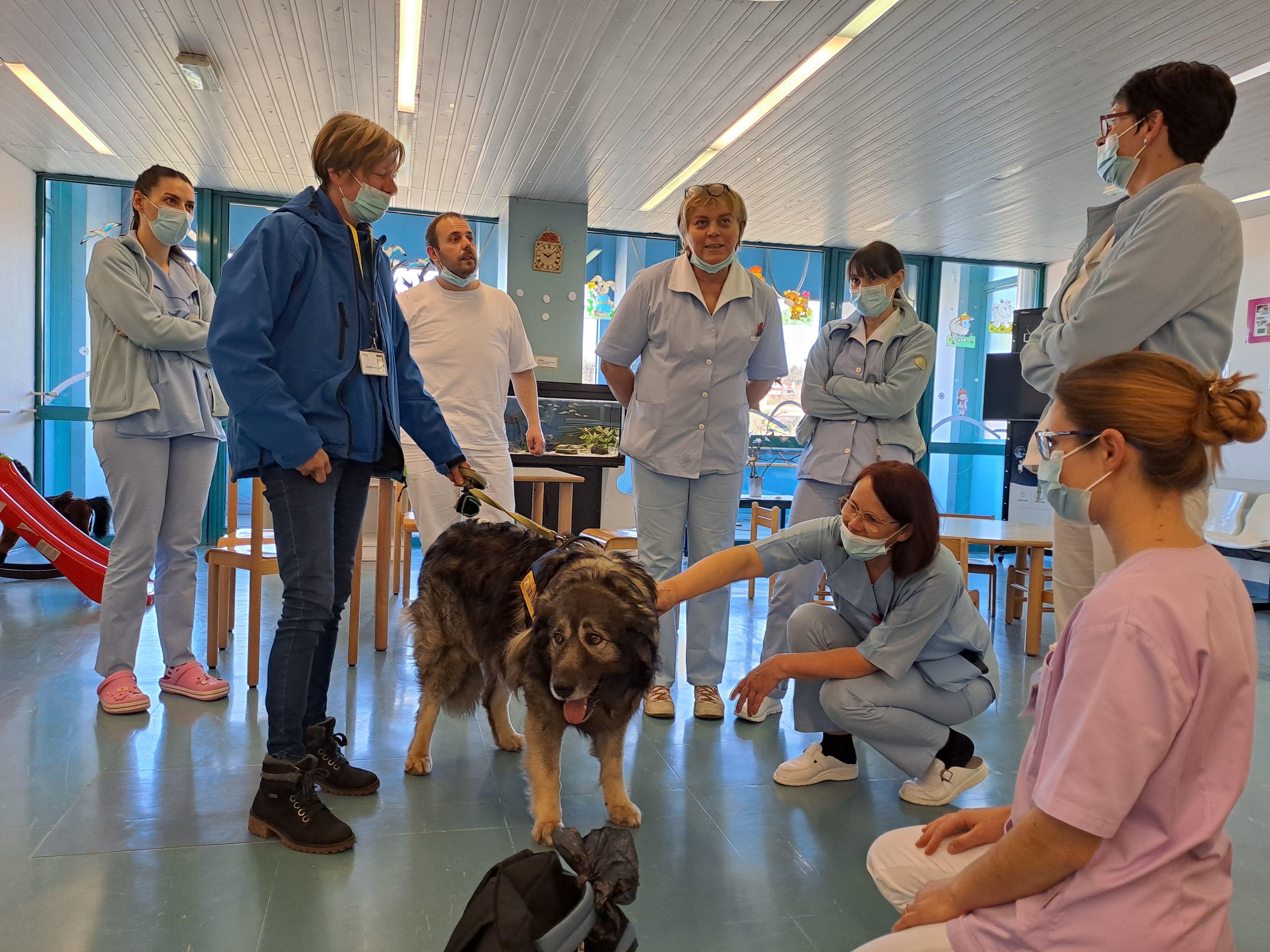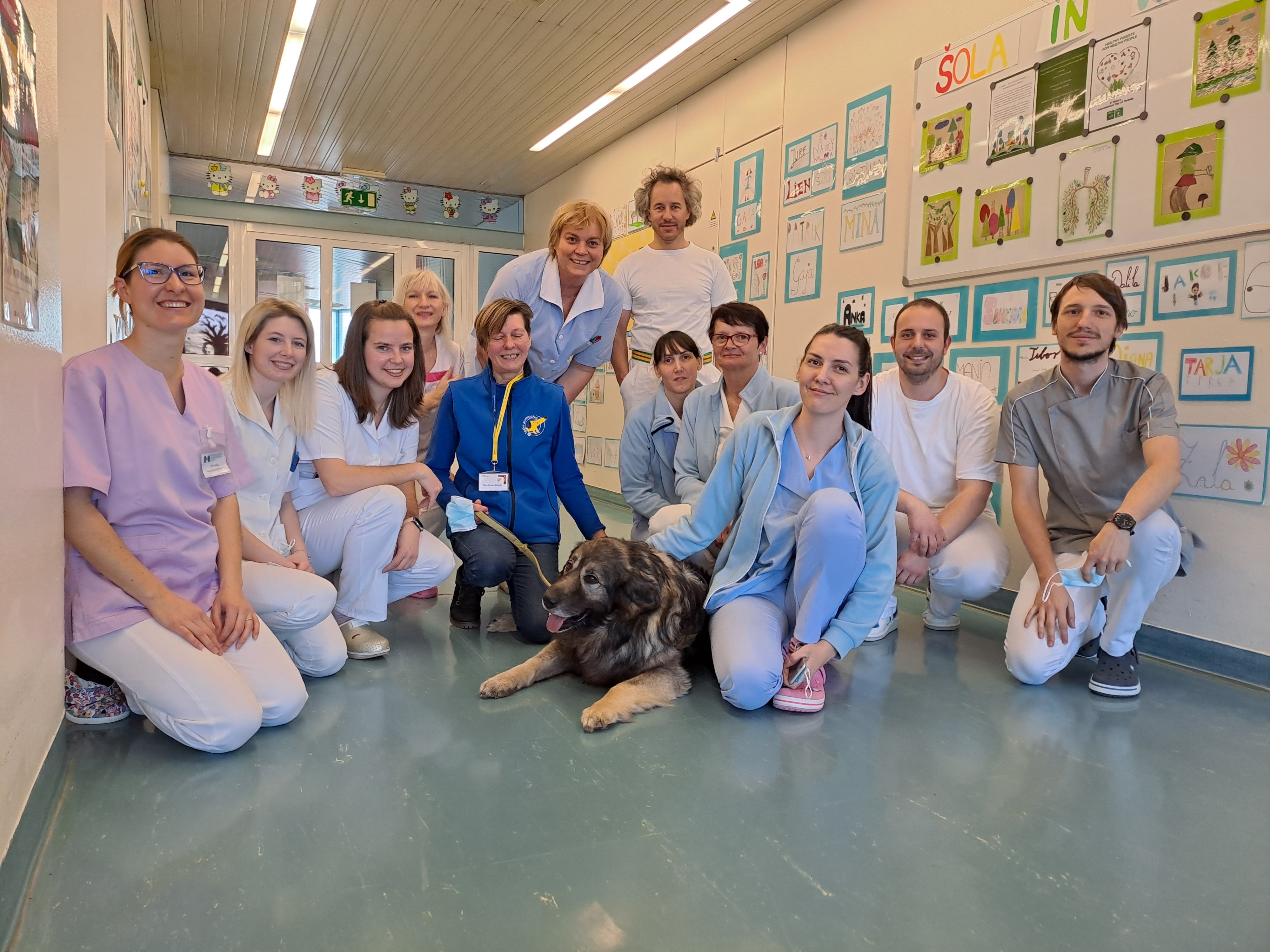 Damjana Lisjak, članica društva za terapijo s pomočjo psov Tačke pomagačke, se je s svojim kraškim ovčarjem Primusom sprehodila po pediatričnem oddelku in poskrbela za veliko veselja, navdušenja, začudenja.