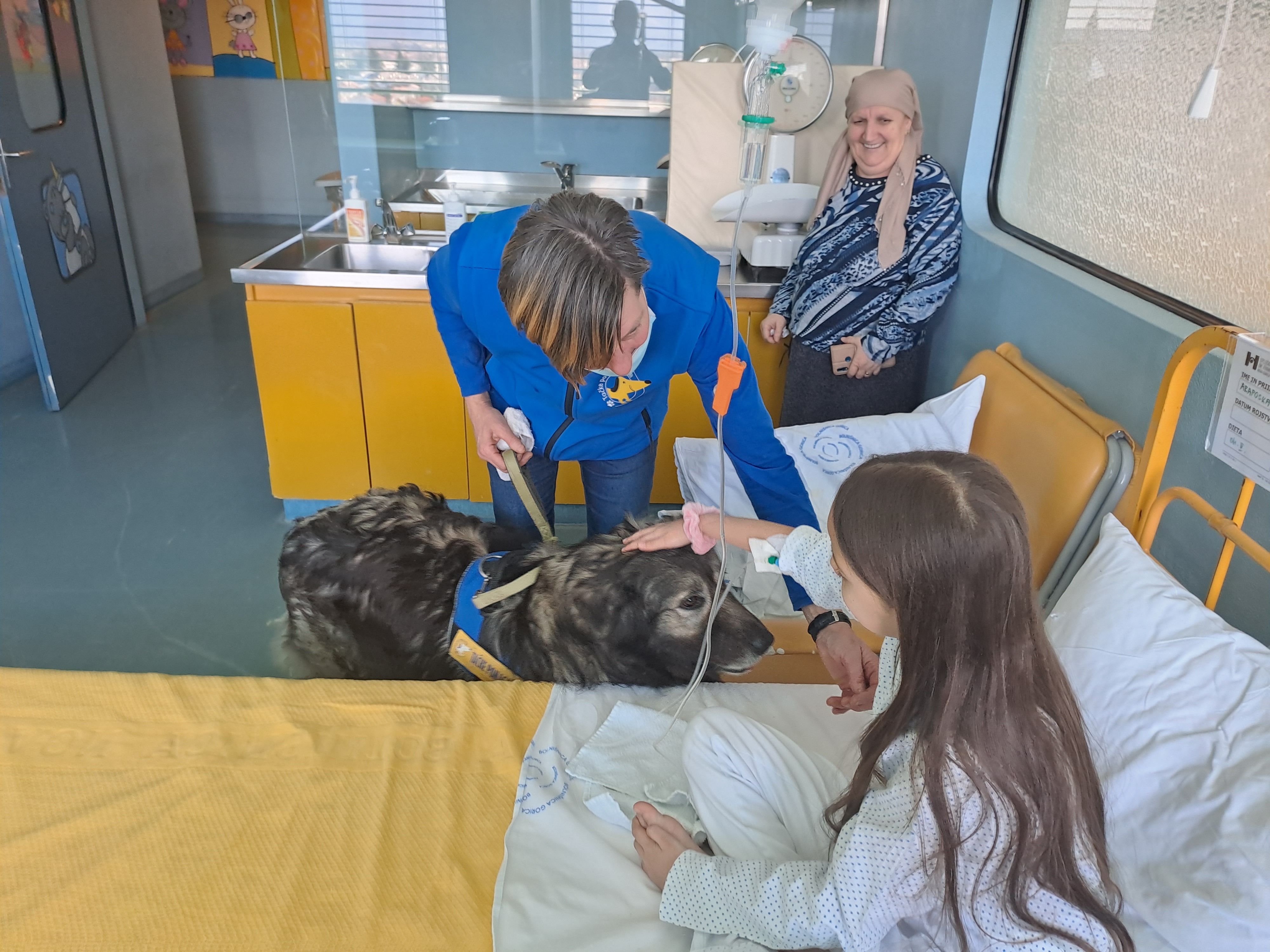 Na pediatričnem oddelku šempetrske bolnišnice nas je obiskala Damjana Lisjak iz društva za terapijo s pomočjo psov Tačke pomagačke s svojim najboljšim prijateljem Primusom.